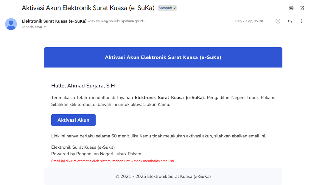 Untuk mendaftar akun di layanan Elektronik Surat Kuasa (e-SuKa), pastikan Kamu memiliki email aktif.