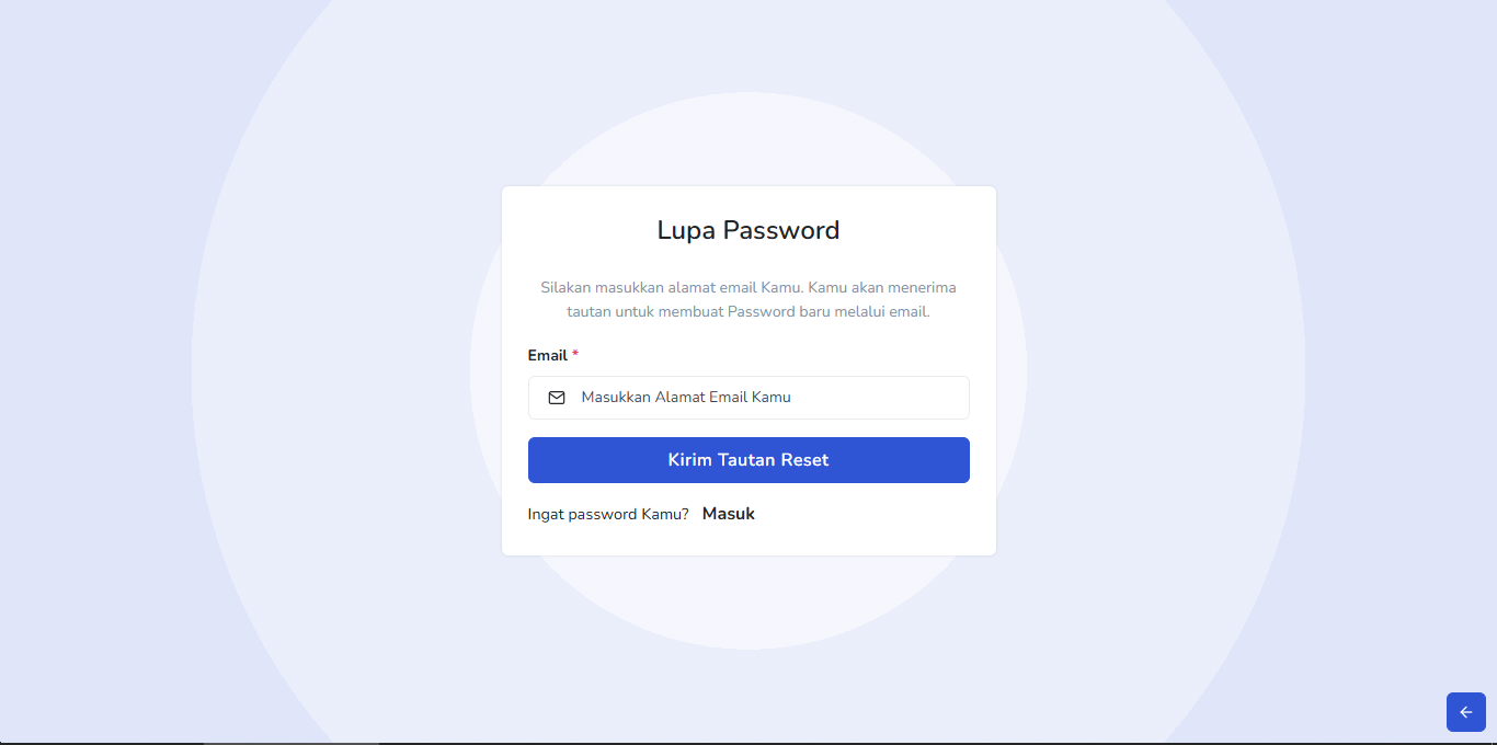 Masukan email Kamu dan tekan tombol kirim, Kamu akan mendapat email masuk yang berisi link tautan untuk mereset password.