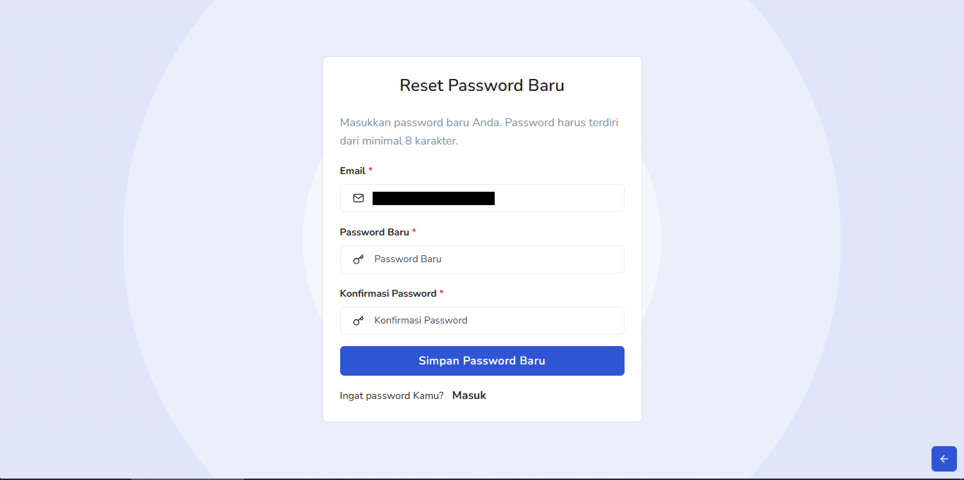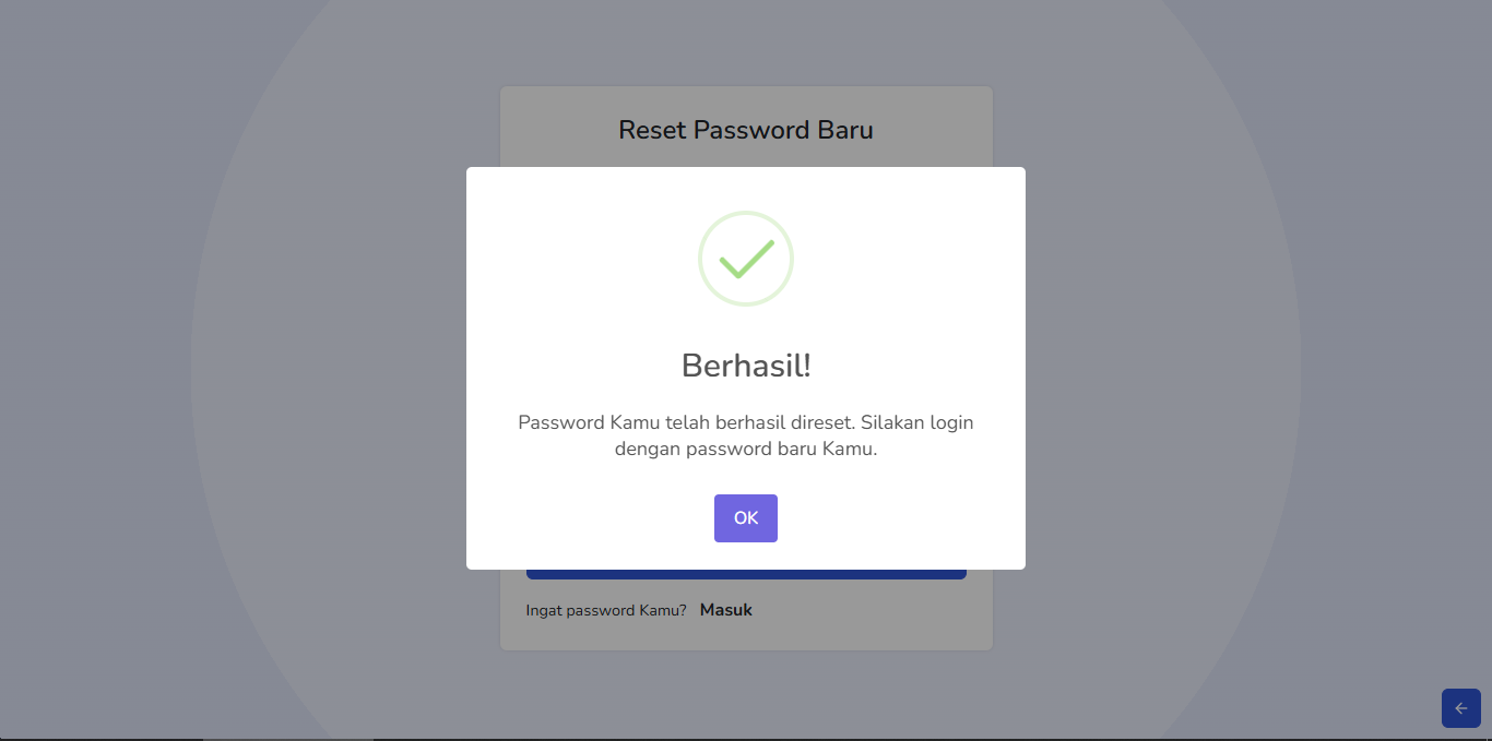 Setelah berhasil mereset password. Silahkan login dengan menggunakan password baru.